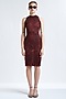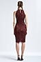 Featuring a maroon dress in polyester base with a round neckline, pleats, and floral print.