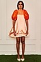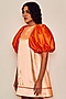 Featuring an orange trapeze mini dress in satin base with balloon sleeves.