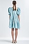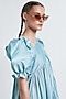 Featuring a sea green tiered mini dress in cotton base with puffed sleeves and an asymmetrical neckline.