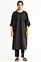 Featuring a black tunic in cotton poplin base with piping details at the back and front pockets. It is paired with matching striped pants having inseam pockets and a woolen melange scarf.