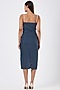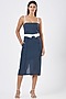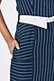 Featuring a navy blue midi dress in rayon base with printed stripes.