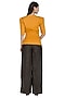 Featuring an ochre yellow top in cotton satin lycra base with embellished shoulders. It has a riveted slit at the waist. This contains only one piece.