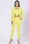 Featuring a yellow blazer in cotton twill lycra base with single button and an overlap slit back. This contains only one piece.