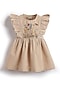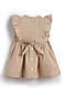 Beige Cotton Floral Embroidered Dress For Girls