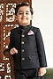 Featuring a black bandhgala for boys in cotton base. It is paired with a printed pocket square. Style it with pants and a classic pair of shoes for wedding ceremonies.