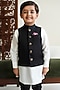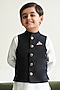 Featuring a black nehru jacket for boys in a cotton base. It is paired with a printed pocket square. Perfect wear for festive occasions and cultural events.
