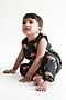 Featuring a black jhabla for babies in cotton base with print. It is paired with pyjama pants. This gift hamper is a thoughtful gift for expecting and new parents.