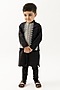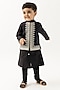 Black Cotton Thread Embroidered Nehru Jacket For Boys
