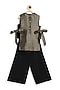 Featuring a black top for girls in viscose brocade base with jewel neck and bow detail. It is paired with viscose culotte pants. Style it with cute hair accessories and sandals for a festive occasion or wedding ceremony.