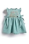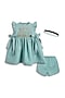 Featuring a blue dress for girls in cotton base with floral embroidery. It is paired with a bloomer and headband. Style it with cute hair accessories and sandals for a wedding or festive occasion.