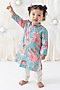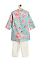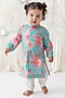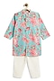 Featuring a blue kurta for boys in cotton base with floral print. It is paired with pants. Accessorize this set with mojris and a watch for a stylish ensemble, ideal for ceremonial events or any festive occasion.