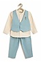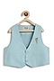 Blue Cotton Linen Blend Embroidered Waistcoat Set For Boys