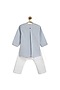 Featuring a blue kurta for boys and girls in cotton base with striped print. It is paired with two pyjama pants having an elasticated waistband. An ideal fusion of elegance and utility for your little ones needs.