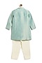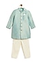 Blue Viscose Brocade Sherwani Set For Boys
