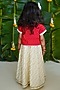 Featuring a red top for girls in cotton base with bandhani print, buttons, and an attached skirt.
