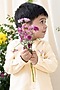 Featuring a cream shirt for boys in cotton base with floral embroidery. Style it with pants and a classic pair of shoes for vacation wear or playdate.