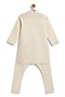 Featuring a cream kurta for boys in cotton base. It is paired with pyjama pants. Style it with juttis and a watch for a festive occasion.