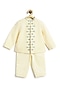 Cream Cotton Satin Embroidered Bandhgala Set For Boys