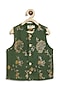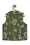 Featuring a green floral bundi jacket for boys in a brocade viscose base with band collar and gold buttons. Perfect wear for festive occasions and cultural events.