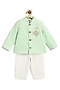 Green Cotton Satin Embroidered Bandhgala Set For Boys