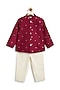 Maroon Viscose Brocade Bandhgala Set For Boys