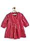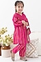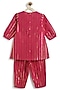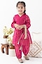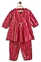 Pink Cotton Lurex Striped Kurta Set For Girls