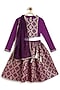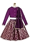 Featuring a purple lehenga for girls in viscose brocade base with an elasticated waistband. It is paired with a blouse having a round neckline and a dupatta having tassels detail. Style it with hair accessories and sandals for a festive occasion or wedding ceremony.