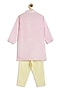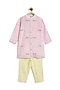 Featuring a purple kurta for boys in viscose base with embroidery. It is paired with cotton pyjama pants. Style it with juttis and a watch for a festive occasion.