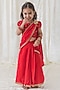 Red Natural Viscose Crepe Pre-Stitched Skirt Saree Set For Girls