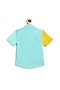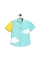Sky Blue & Yellow Cotton Applique Embroidered Shirt For Boys