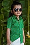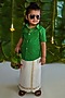 Featuring a green shirt for boys in soft cotton base with bandhani print. It is paired with contrasting pre-stitched cotton mundu dhoti pants.
