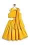 Featuring a yellow lehenga for girls in cotton base with bandhani print. It is paired with an embroidered blouse and a viscose dupatta. Style it with hair accessories and sandals for a festive occasion or wedding ceremony.