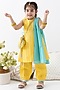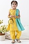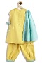 Featuring a yellow kurta for girls cotton lurex base with striped pattern. It is paired with salwar pants and a dupatta. Style it with cute hair accessories and sandals for a festive occasion or wedding ceremony.