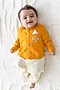 Featuring a yellow bandhgala for boys in cotton satin base with an attached pocket square and embroidery. It is paired with white cotton pants. Style it with a watch and pair of mojris for a wedding, sangeet or engagement ceremony.