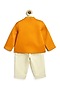 Yellow Cotton Satin Embroidered Bandhgala Set For Boys