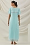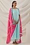 Featuring a blue straight kurta in cotton cambric base with pockets and stitch line detail, including sequins and chikankari machine embroidery. It is paired with contrasting palazzo pants having pockets and lace detail, including a cotton dupatta having lace detail.