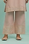 Featuring a pale pink kurta in slub cotton base with gota details. It is paired with matching palazzo pants.