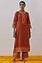 Rust Slub Cotton Hand Block Printed & Gota Kurta Set