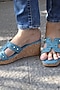 Featuring a pair of teal wedges in vegan leather base with studs. It has a TPR sole.