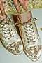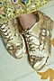 Featuring a pair of gold sneakers in faux leather base with hand embroidery. It has a faux leather underlining, a rubber sole and 2.5-inch heels