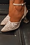 Featuring a pair of white heels in net and PVC base with floral motif, pearl and beads embroidery. It has a cotton underlining and 2-2.5inch transparent block heels. Elevate your stride with timeless elegance and exceptional craftsmanship, perfect for festive occasion or wedding ceremony.