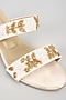 Featuring a pair of white block heels in suede base with pearl work and cushioned rubber sole. It has 3-3.5 inch heels. Perfect for weddings, sangeet nights, mehendi ceremonies, festive parties, and elegant evening celebrations.