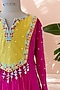 Featuring a fuchsia pink anarkali for girls in mul cotton base with thread hand embroidery. It is paired with straight pants and a yellow dupatta. Accentuate it with cute hair clips, comfy sandals and a tiny sling bag for a stylish ensemble, ideal for wedding functions, birthday parties or festive occasions.