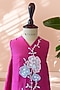 Magenta Mul Cotton Floral Embroidered Co-Ord Set For Girls