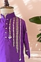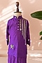 Purple Chanderi Hand Embroidered Kurta Set For Boys