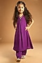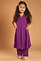 Featuring a purple kurta for girls in georgette base with embroidery. It is paired with pants. Style it with cute hair accessories and sandals for a festive occasion or pooja ceremony.