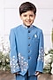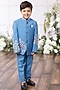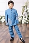 Blue Silk Floral Embroidered Bandhgala Set For Boys