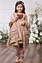Featuring a blush pink kurta for girls in velvet base with embroidery. It is paired with straight fit trouser and a brocade dupatta. Style it with cute hair accessories and sandals for a festive occasion or wedding ceremony.