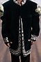 Featuring an emerald green bandhgala for boys in velvet base with embroidery. It is paired with pants. Style it with a watch and pair of mojris for a wedding, sangeet or engagement ceremony.