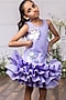 Featuring a lavender dress for girls in scuba base with embellishment. Accessorize it with matching hair accessories and sandals for a stylish ensemble, ideal for any festive occasion or birthday party.